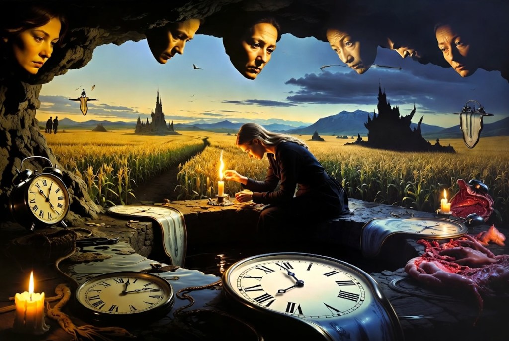 She lights a candle as dusk breathes deep.