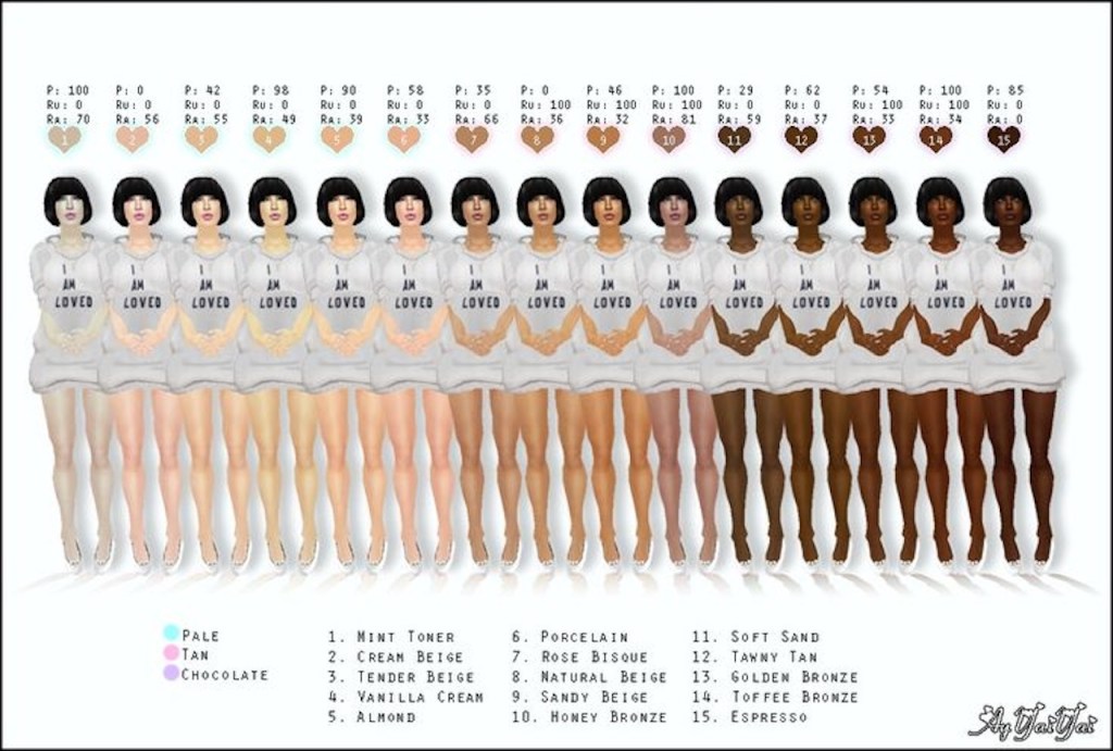 And all shades, hues, and tones in between, some of which are metaphorically called “yellow,” “red,” and sometimes “olive.” Even the lightest skin tone is not literally “white,” and the darkest “skin tone” is not literally black.