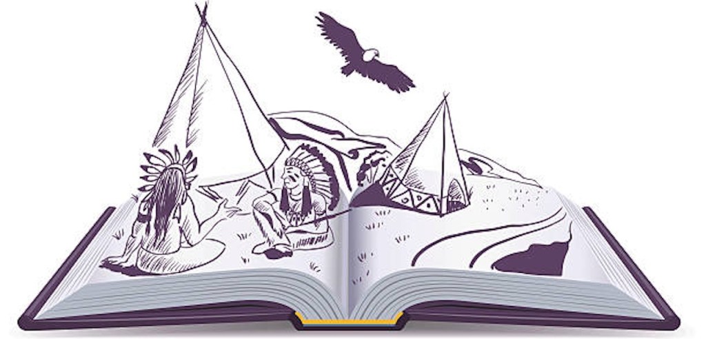 Image:  “Open book. Indians sit at wigwam on pages open book”    iStock